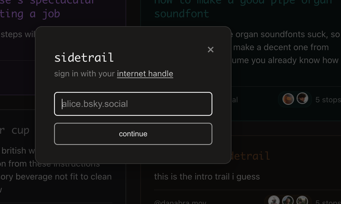 The last phrase is interesting because it refers to 's recent writing about Internet Handle, which has seeded much discussion around unifying the branding of atproto authentication. Internet Handle pulls on the idea that every account is referenced by a unique internet domain and atproto lets you bring that domain across apps (well at least any app that interops with atproto). The part about internet handle that I like is the way that it reframes how adding a period inside @handles demonstrates that it can potentially be used across apps. As Dan elaborates, it's this initial contradiction between how a "'handle' always belongs to an app but here itโ€™s an 'internet handle' like an 'internet site'", that someone is confronted with that makes it an interesting idea. And it's certainly starting to catch on!
